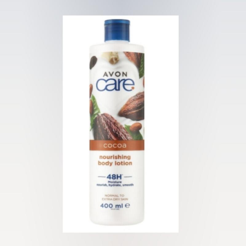 Поживний лосьйон для тіла з олією какао від Avon підходить для ефективного розв'язання проблем навіть дуже сухої шкіри. Він щедро насичений компонентами, що відновлюють захисний бар'єр епідермісу після використання агресивних засобів. Ці інгредієнти також утворюють на поверхні шкірного покриву невидимий шар, що запобігає надмірній втраті вологи. Лосьйон Avon Care з олією какао — справжнє джерело вітамінів і жирних кислот для гідратації, відновлення і зміцнення шкіри. У разі регулярного використання цього засобу шкірний покрив стає еластичнішим, гладкішим і оксамитно-ніжним.