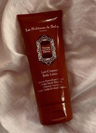 Молочко для тіла "Аюрведа" La Sultane De Saba Body Lotion Ayurvedic 200мл. - 1750грн. Молочко для тіла Body Lotion Ayurvedic має ніжну текстуру, яка забезпечує м'яке та тривале зволоження, зміцнює та живить шкіру. Швидко поглинається і залишає неймовірно теплий деревний, терпкий шлейф з нотками спецій, який замінить або доповнить ваші парфуми. Унікальне молочко складається із природних інгредієнтів, які містять все необхідне для збереження краси шкіри. Косметичний засіб включає олії кокоса, каріте, мигдалю, здавна відомі поживними властивостями. Продукт допомагає наповнити шкіру корисними речовинами, зволожити та омолодити її. З Body Lotion Ayurvedic шкіра набуває здорового вигляду, стає шовковистою і більш пружною. Переваги: Пом'якшує шкірний покрив, знімає всі види лущень і почервонінь, попереджає появу свербіння і стягнутості, робить шкіру ніжнішою, гладкою і приємною на дотик. Натуральні рослинні екстракти зміцнюють та вітамінізують, допомагають зберегти красу та молодість шкіри. Містить чудовий ароматичний комплекс на основі ноток жимолості, який перенесе вас в атмосферу гармонії, релаксу та відпочинку. Натуральні олії живлять, усувають лущення, допомагають прибрати ороговілий шар клітин, зміцнюють імунітет шкірного покриву, захищають його від негативного впливу навколишнього середовища. Активні інгредієнти: Масло ши - надає лікувальний, поживний, балансуючий ефекти. Кокосове масло - чинить зволожуючу, омолоджуючу, відновлюючу дії. Масло солодкого мигдалю - надає живильну дію, вітаміни А, В і Е. Екстракти жимолості - тонізують, стимулюють мікроциркуляцію крові, зміцнюють стінки судин.