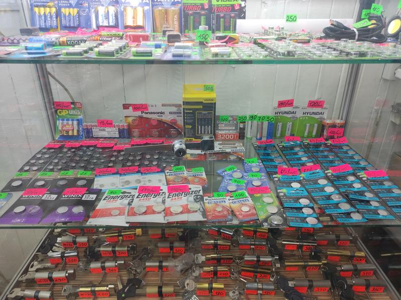 Великий вибір батарейок та акумуляторів. Залишилось декілька ліхтариків та світильник с датчиком руху. Зарядний пристрій для акумуляторів. Ціни запитуйте, на фото ціни не актуальні.
