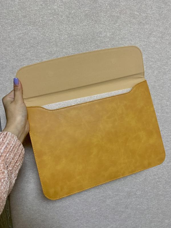 Чохол з екошкіри у вигляді папкиВсередині підкладка матеріалом схожим на замшНа фото як виглядає чохол з ноутом MacBook Air 13