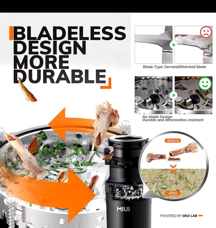MIUI подрібнювач харчових відходів, безатінова сталева дробарка для відходів,