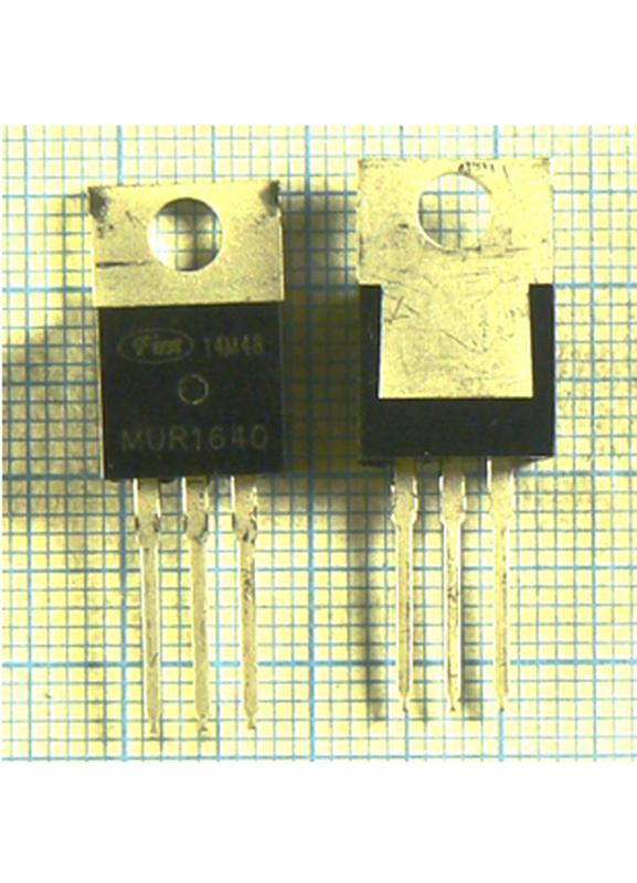 MUR1640 to220 400v 16a 50ns 2 діода загальний катод артикул 03575 на складі 7 шт. за ціною 23.88 Грн. за один шт.