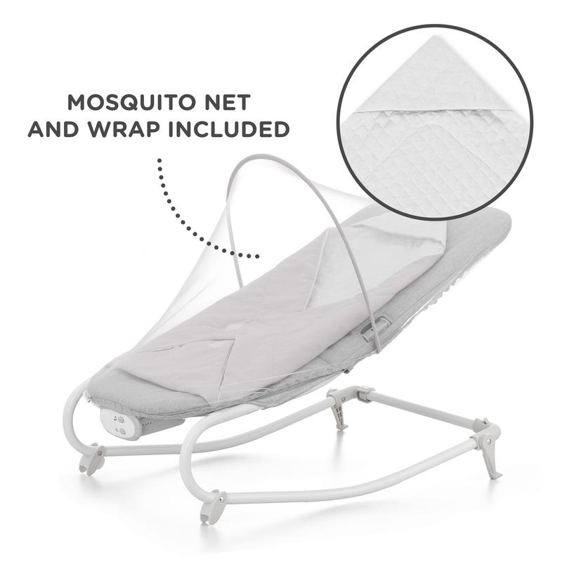 - 8 мелодій і вібрації. На фронтальній частині шезлонга є зручна в обслуговуванні панель керування. Там можна ввімкнути заспокійливі вібрації або одну з 8 мелодій, які заспокоять малюка та допоможуть йому швидше заснути, або ж просто заспокоять і розслаблять.