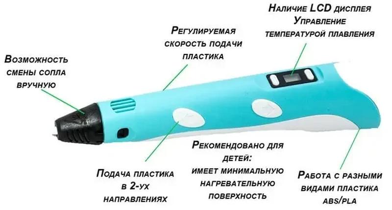 Дитяча 3D-ручка для малювання і створення об'ємних моделей 3DPen-3 з дисплеєм+ трафарети + 10 м пластику + підставка в наборе400 грн із трафаретом350 грнбез трафарету