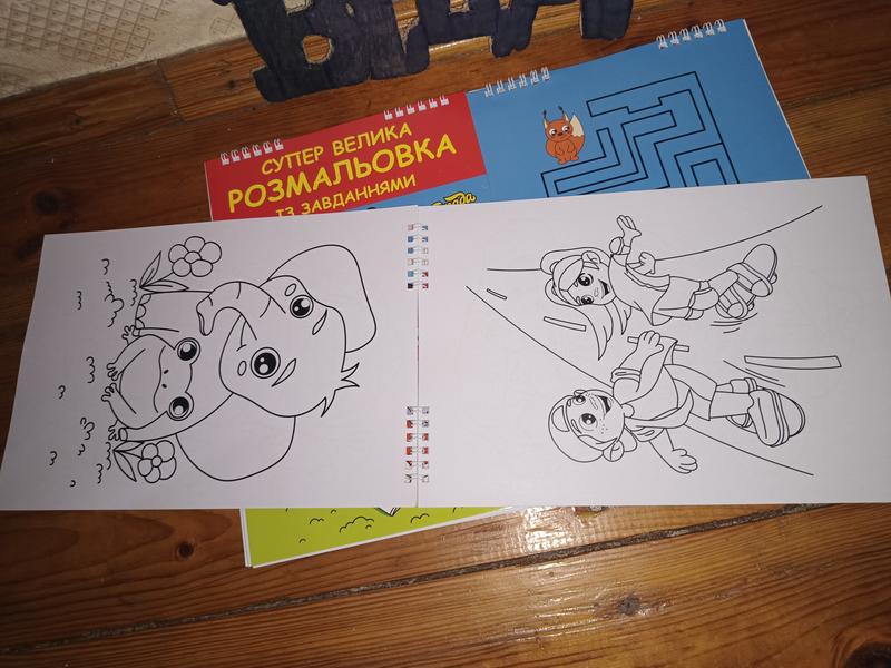 Велика розмальовка на пружині формату А4 з додатковим ефектом обкладинки – глянсовим УФ-лаком. Усередині має великі малюнки, тому навіть найменшим буде легко та зручно їх розмальовувати. Листи ідеально підійдуть для олівців, пастелі та фломастерів. Має 48 сторінок із малюнками. Вік: 3+. Розміри: 21 х 30 см. В наявності 2 штуки, ціна вказана за одну