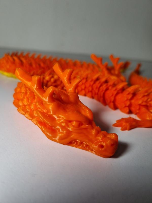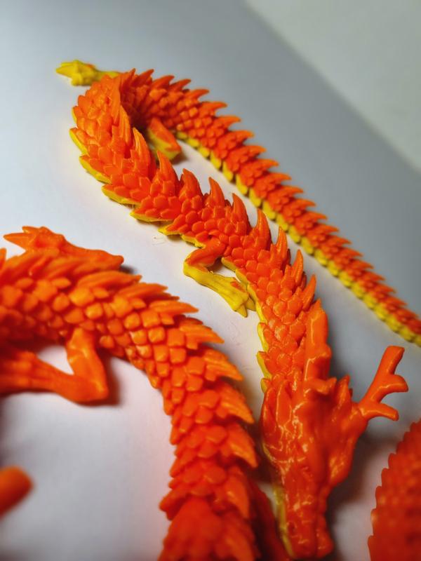 дракон виготовлений еа 3д принтері з рослинного пластику, є різні кольори