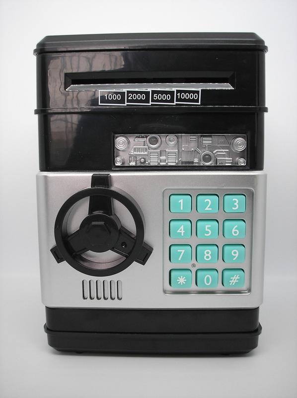 Чудова іграшка, яка не залишить байдужими і дітей, і дорослих, які відзначать високу якість виготовлення цього сейфа, скарбнички, банкомату. Електронна скарбничка сейф із купюроприймачем це дитячий інтерактивний сейф скарбничка "Number Bank" з кодовим замком, яка виконана у вигляді стандартного сейфа з кнопками, екраном та здатністю затягувати купюри всередину як у справжньому банківському терміналі та видавати різні звукові сигнали. Наприклад - при відкритті сейфа ми почуємо скрипучий звук старих дверей з незмащеними петлями, що викликає у людей романтичні почуття, а також думки про піратів і їх незліченні скарби, які зберігалися в старих скрипучих скринях. Сама ж скарбничка електронний сейф - оригінальна, солідна річ, яку не соромно подарувати будь-якій людині будь-якого віку, а діти від неї будуть просто в захваті. Працює пристрій від стандартних батарейок розміру АА. Заводські налаштування коду за замовчуванням задано у форматі чотирьох нулів. Скарбничка з кодом у вигляді сейфа надійно зберігає як копійки, так і купюри у будь-якій валюті та в номіналі. Як і належить справжньому сейфу, ця скарбничка банкомат має кодовий замок. Введіть код, натисніть решітку, поверніть ручку і відкриється. Якщо ж ви раптом забули зачинити двері, скарбничка нагадає звуковим оповіщенням, що дверцята відчинені, а це типовий принцип роботи справжнього банківського сейфа. Можна легко змінити код на будь-який інший за допомогою простих маніпуляцій. Якщо ви забули пароль можна повернути значення коду в налаштування за умовчанням, вийнявши батарейки на кілька хвилин, тому ніяких розчарувань і проблем у Вас не виникне. Дитячий сейф скарбничка "Number Bank" з кодовим замком та купюроприймачем сподобається вашим друзям та близьким та стане чудовою ідеєю подарунка на будь-яке свято як дорослим так і дітям. Іграшка не комплектується батарейками, потрібно 3 шт. Характеристики: Матеріал - гіпоалергенний екологічний ABS пластик без неприємного запаху, міцний та красивий Тип запірного механізму: електричний; Звуковий супровід: так; Можливість зміни пароля: так; Слоти для прийому грошей: банкноти, монети; Джерело живлення: батарейки АА 3 шт (у комплект НЕ входять) Габаритні розміри: висота - 19 см; ширина - 13 см; глибина - 12 см; Вага: 540 г; Вікова група: для дітей віком від 6 до 60 років. Колір чорний Комплектація: Сейф; Інструкція (англійською мовою); Картонний пакувальний бокс. Інструкція: Для зміни пароля на сейфі, необхідно зробити кілька простих дій (як змінити пароль на сейфі): 1. Ввести 0000, натиснути решітку, повернути ручку сейфа 2. Відкрити дверцята сейфа; 3. Затиснути та не відпускати кнопку "*" (почнуть блимати зелений та червоний світлодіоди); 4. Не відпускаючи кнопку "*" ввести новий пароль, що складається з 4-х цифер; 5. Не відпускаючи кнопку "*" натиснути кнопку "#" (перестануть блимати зелений та червоний світлодіоди). Є гурт ціна 307 грн від 4 шт гуртом дроп дропшиппінг