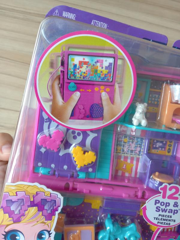 Ігровий вечірній набір Polly Pocket захований у компактній коробці, яку можна брати куди завгодно. Набір являє собою кімнату, призначену для ігор і розваг; у ньому є багато ігрових елементів.