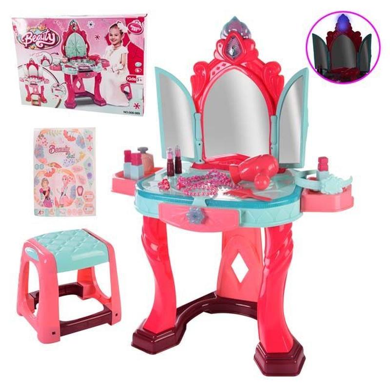 Трюмо 57-34-76 см. Стілець, фен, флакони, обруч, прикраси. 15 предметів. Музика, світло. На батарейці. У коробці 42,5-59-12 см.