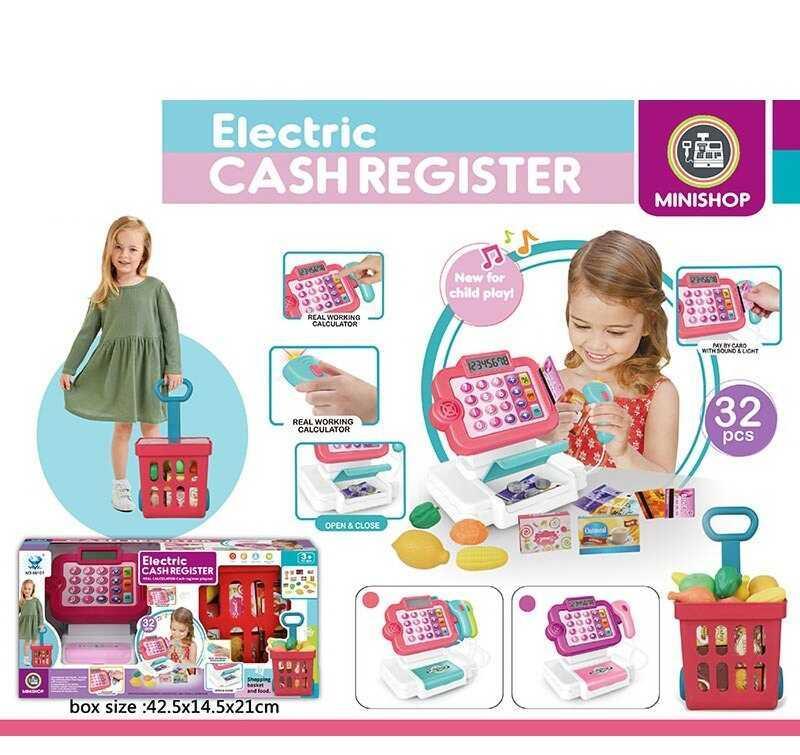 сканером, іграшкові купюри, картка, імітація продуктів, візок; - касовий