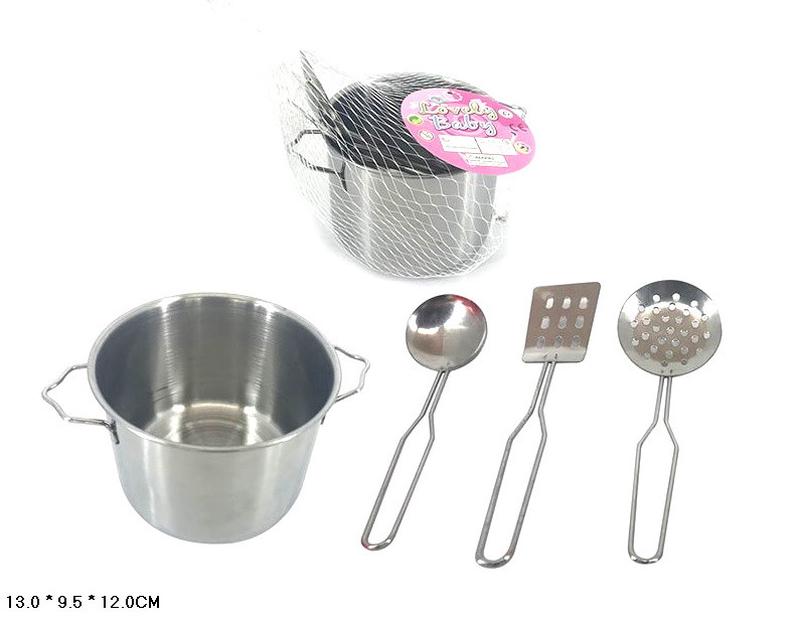 Ігровий набір металевого посуду Каструля з аксесуарами, у сітці 13*10*12см
