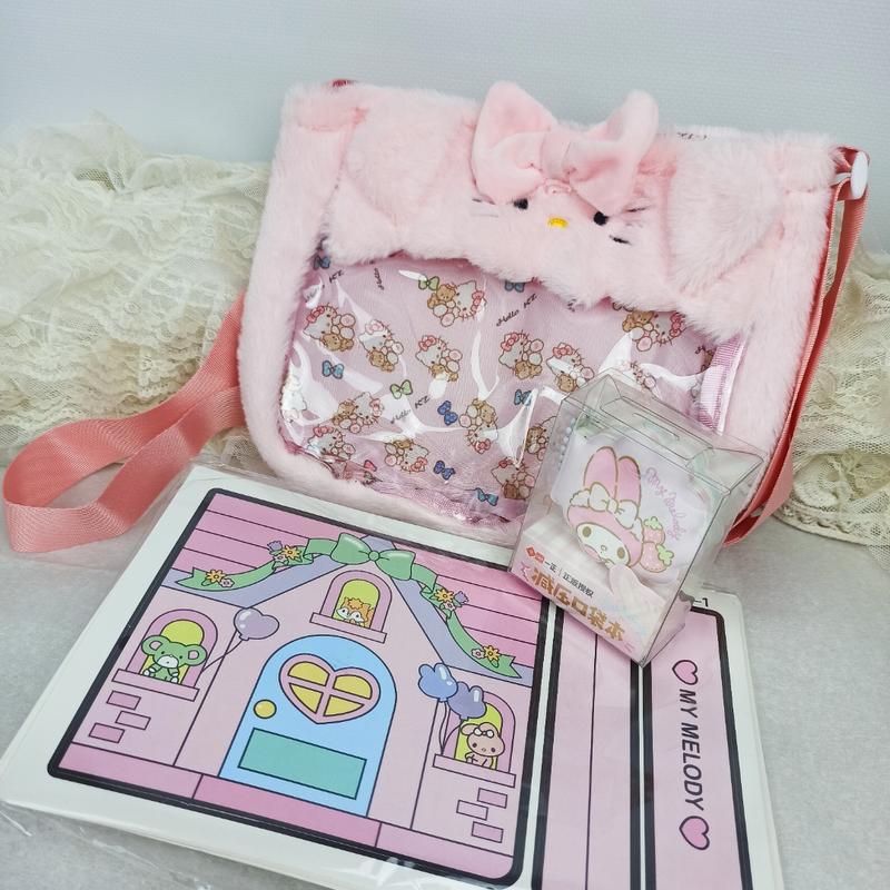 Ціна за набір Sanrio: сумка Кітті, бізі бук Melody, блокнот зі стікерами. Можна придбати окремо.