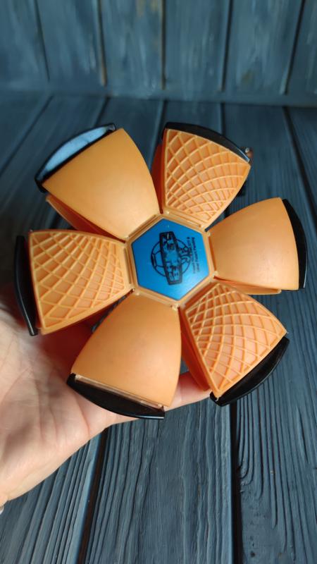 Кинь диск і отримай м'яч! Завдяки випадковій системі диск розривається під час польоту і перетворюється на кулю. Спеціальний матеріал забезпечує хороше зчеплення для швидкої дії.