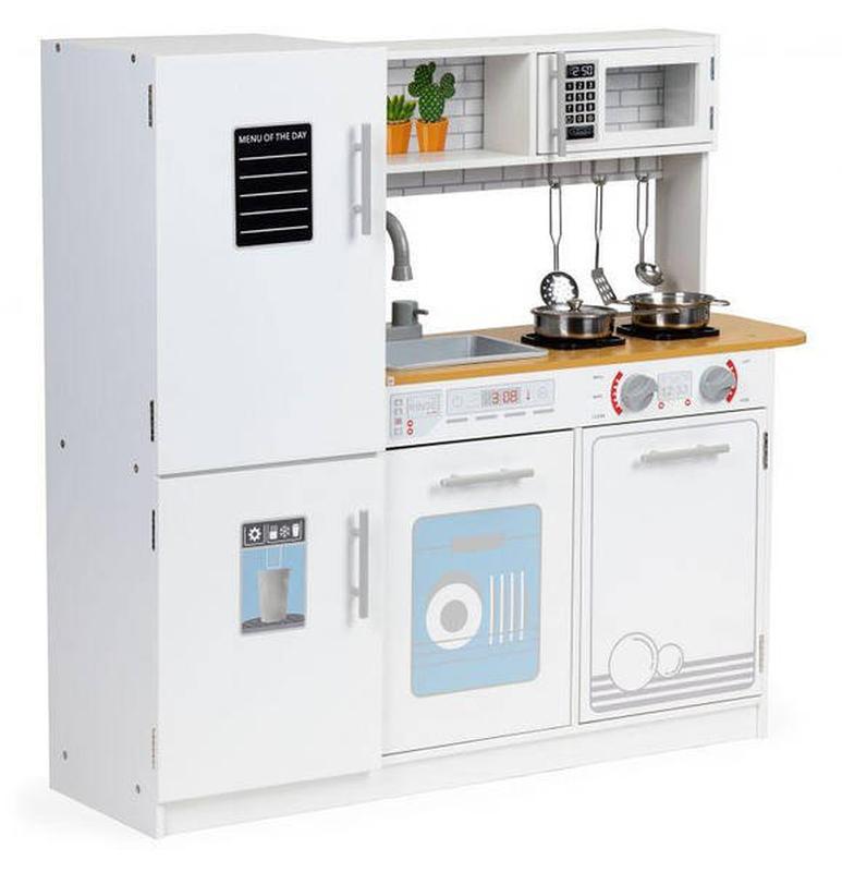 Дерев'яна дитяча кухня Ecotoys - це одна чарівність вінтажного дизайну! Дітям подобаються іграшки, які змушують їх відчувати себе дорослими, які виконують свої повсякденні обов'язки. Безсумнівно, така форма гри позитивно впливає на розвиток дитини, розвиває уяву і ручні навички. Завдяки кухні Ecotoys діти зможуть відчути себе справжніми кухарями, а задоволення від приготування страв для всієї родини буде нескінченним. Завдяки красивій колірній гамі і збереженню безлічі деталей кухня відмінно виглядає як в дитячій, так і в вітальні. Іграшка виготовлена з дерева і поєднує в собі безліч цікавих функцій. Кухня позбавлена небезпечних елементів і гострих країв, і вся покрита фарбами, безпечними для дітей. Кухня Ecotoys, безсумнівно, кращий подарунок, який ви можете подарувати своїй дитині! Про таку кухні мріє кожен початківець шеф-кухар!