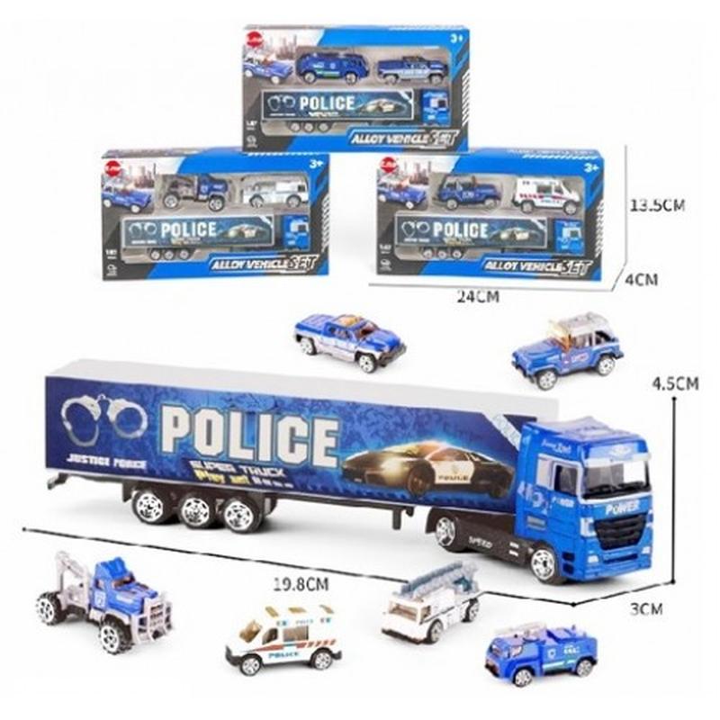Трейлер з набором поліцейська техніка метал.3 шт. TN-1281B 3 вида в коробці
