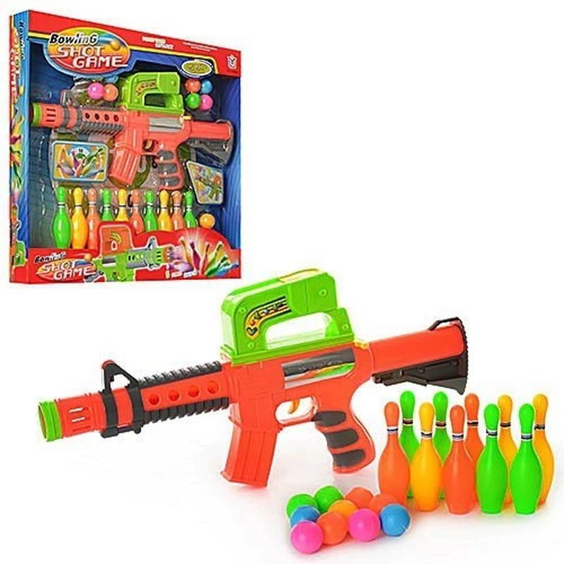 Автомат 648W 41см, 2 види, стріляє кульками, кульки 10шт, кеглі 10шт, в коробці 45.5*42*6см