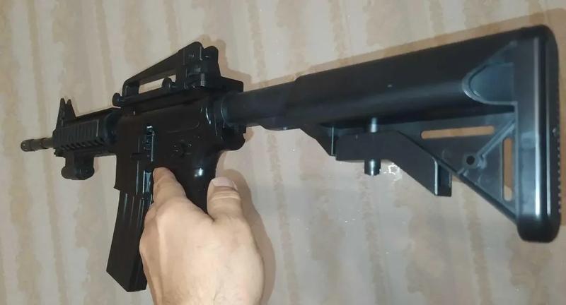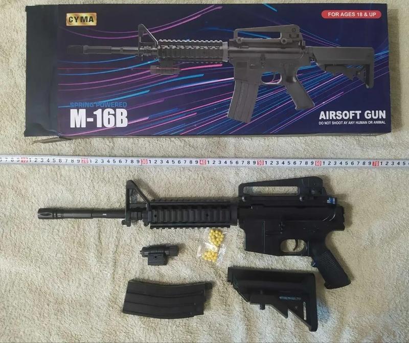 У коробці міститься в розібраному стані: автомат, приклад, лазерний