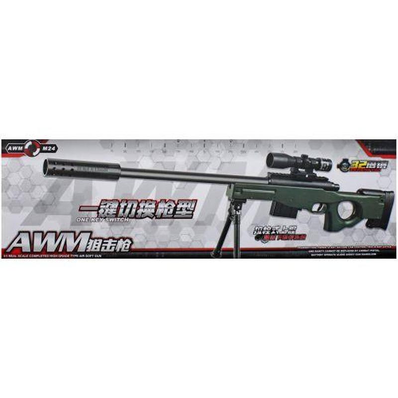 Снайперська гвинтівка з сошками, глушником та прицілом. Стріляє пластиковими кульками 6 мм. Розмір автомату - 82 см. Гвинтівка може бути використана для розваги або тренувань, забезпечуючи високу точність та відмінну якість стрільби. Крім того, у комплекті також надаються кульки, що робить гвинтівку готовою до використання без додаткових витрат.