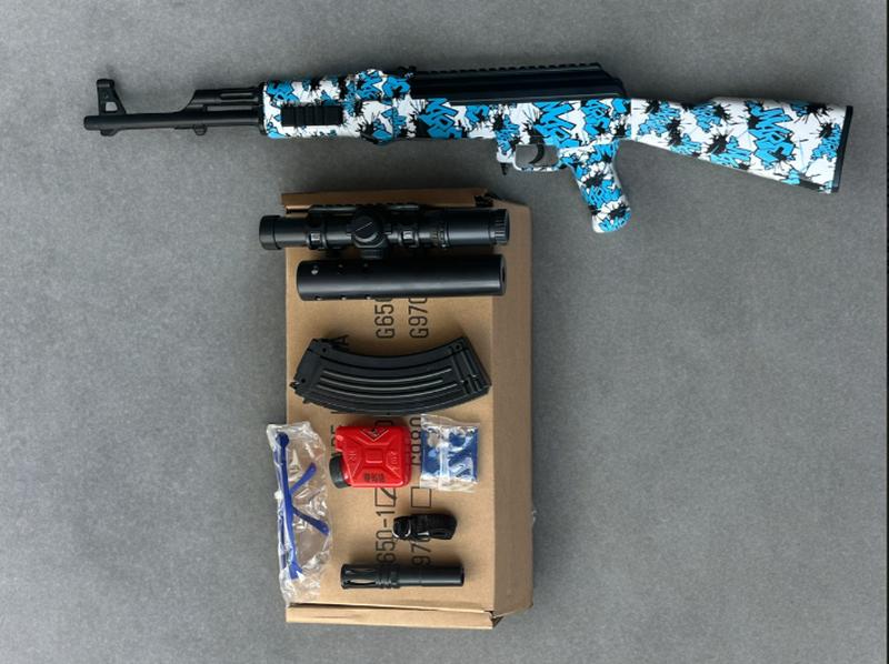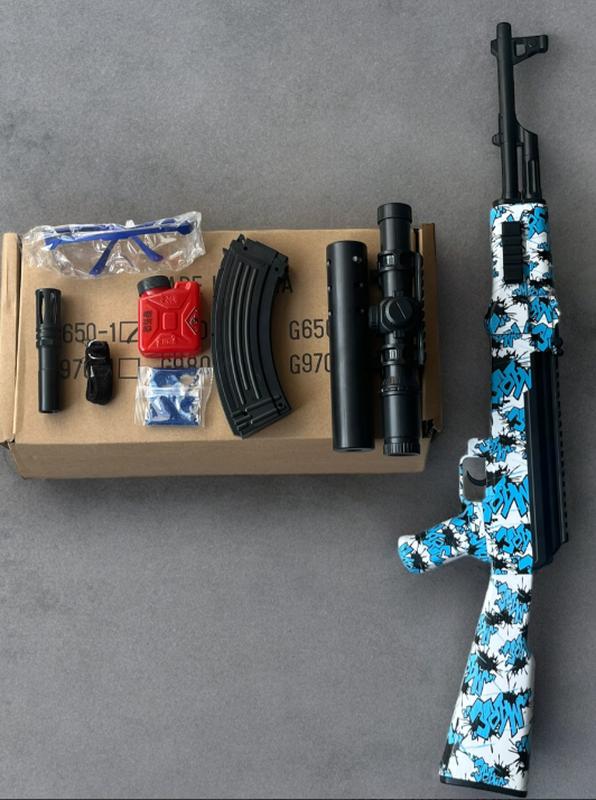 справжнього АК-47, її розмір відповідає реальному автомату. Матеріал іграшки -