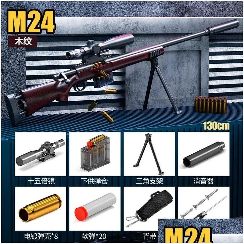 Велика іграшкова снайперська гвинтівка м24 з оптичним прицілом стріляє м'якими кульками з...