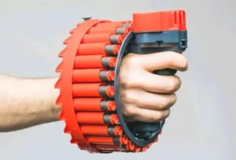 За счет съемного аккумулятора бластер обладает большей мощностью и, в отличие от моделей на батарейках, с легкостью крутит барабан.