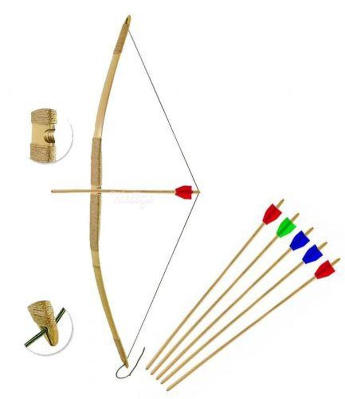 Лук дитячий бамбуковий, великий, з деревʼяними стрілами. Гладко відшліфований, з виїмкою під стрілу. Розмір лука - 100 см. Розмір стріл - 50 см (5 у комплекті).