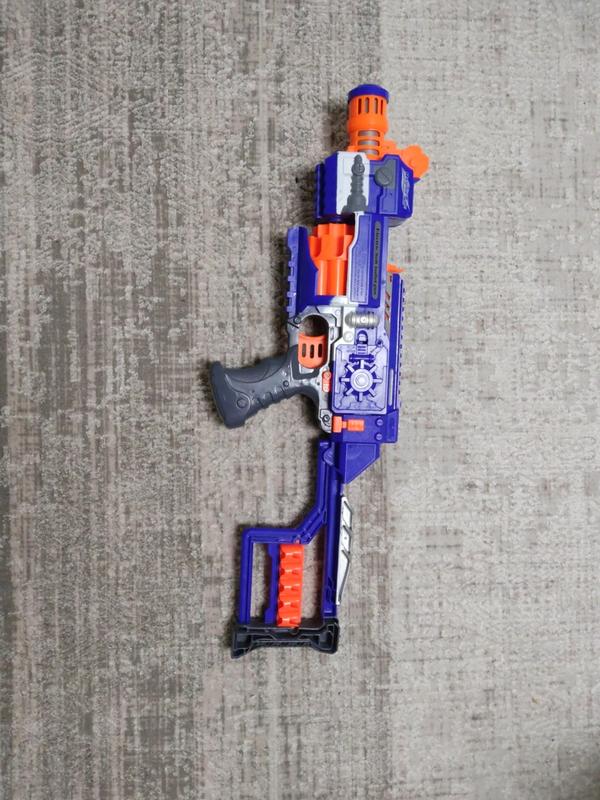 Пістолет іграшковий на батарейках.Стріляє патронами від Nerf.Патрони не йдуть в комплекті з пістолето.трішки подерта фарба але працює добре.🏔️ NextGenMountain 🏔️