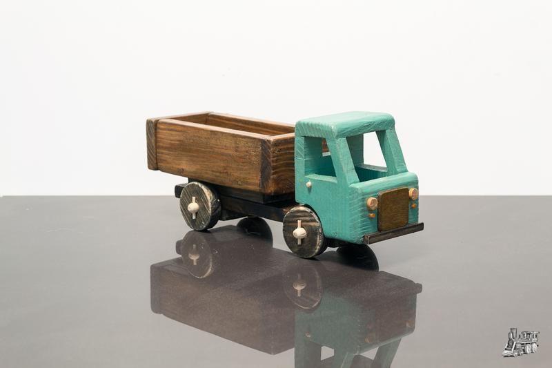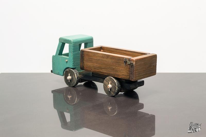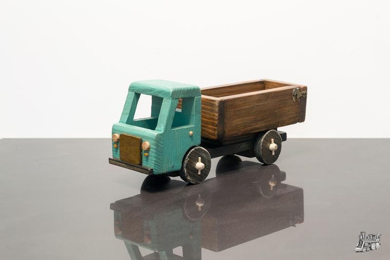 Пропоную вашій увазі унікальні дерев'яні іграшки ручної роботи! Цей вантажівка може стати цікавим і незвичайним подарунком для дитини. Машинка відмінно підійде як для гри, так і в якості інтер'єрної іграшки, наприклад прикраса для дитячої кімнати. Матеріал виготовлення сосна. Всі выпилено і відшліфована вручну. Кабіна пофарбована акриловою фарбою, а кузов морилкою. Машинка покрита акриловим лаком. Колеса крутяться, відкривається задній борт. Довжина машинки 21 см