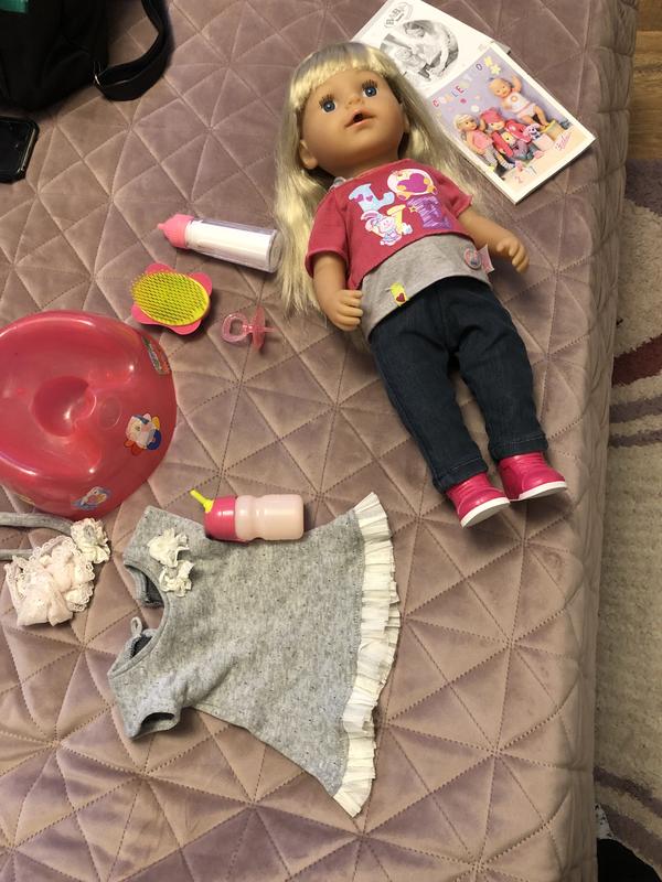 Кукла Zapf Baby Born Старша сестричка 43см, з аксессуарами, колінця в ніжках згинаються, п‘є з бутилочки, нажимаєш на ручку, течуть слізним, м’які коси, одяг оригінал, все в наявності, ще шили сукню і на голову прикраси, також віддаємо, горшок не від цієї ляльки а до неї віддаємо в подарунок. Лялька в ідеальному стані