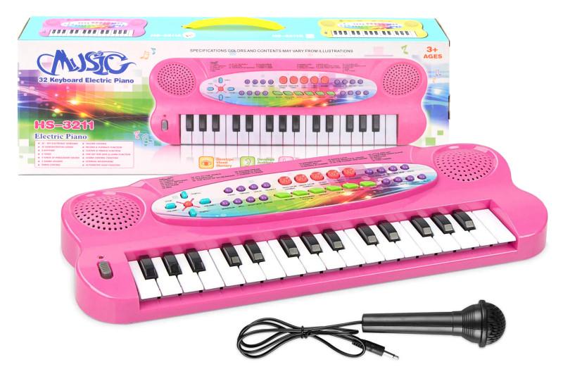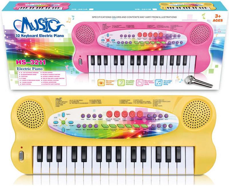 Дитячий синтезатор з мікрофоном HS3211В дуже сподобається дітям. Ігровийсинтезатор працює від батарейок. Розмір складає 40*16 см, чудовий подарунокмалим музикантам.