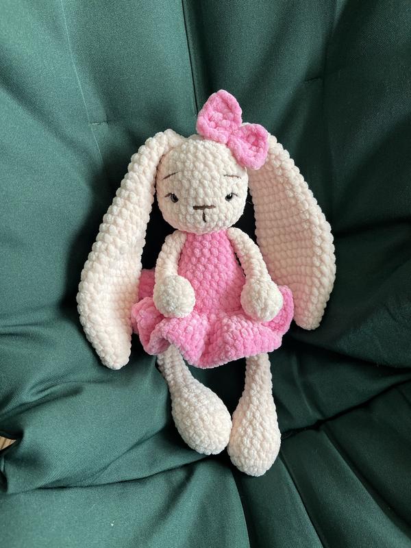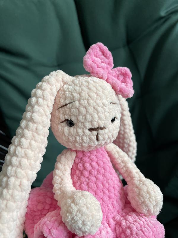 В'язана іграшка амігурумі зайчик ліліт в рожевій сукні