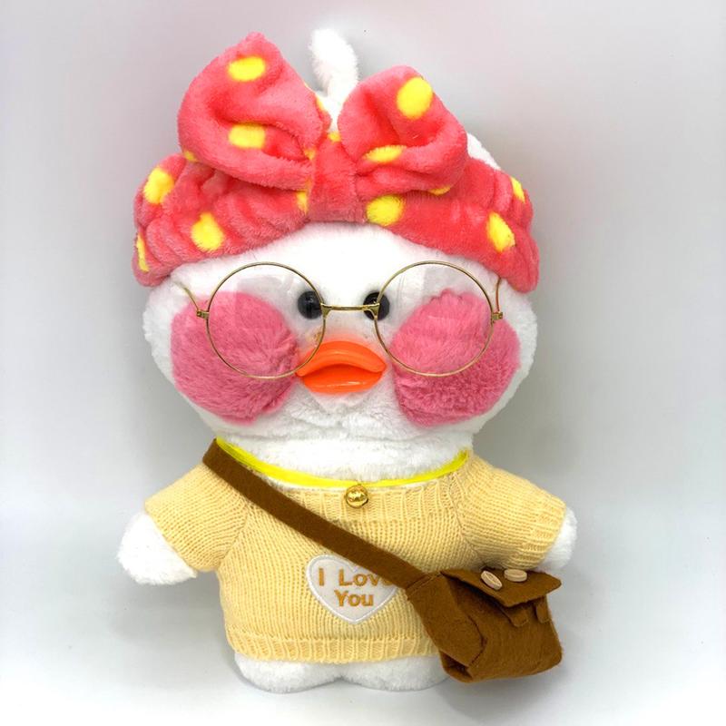 Качечка Лалафанфан — не просто м'яка іграшка, що стала модною завдяки інтернету. Хтось вважає її просто красивим сувеніром, але прославилася вона не цим! Іграшка є сучасною популярною лялькою, адже її також можна заряджати, брати всюди із собою та вигадувати безліч нових ігор. Колекція Лалафан налічує кілька різновидів каченят і понад 30 унікальних вбрань. Виріб привабливий тим, що має зручну «конституцію» тіла — на нього можна шити та в'язати вбрання самостійно, що відкриває безмежний простір для творчості. В епоху цифрових технологій каченята стали запитані як моделі. Вони мають привабливу мордочку, їх можна заряджати та фотографувати в різних локаціях. Зібравшись із друзями, у яких уже є такі «вихованці», можна весело провести час, влаштувавши модний показ, імпровізоване чаювання або костюмовану вечірку. Качечка пошита з приємних матеріалів, має кумедний пластиковий дзьобик і маленькі очі з ґудзиків. Кожна качечка одягнена у своє унікальне вбрання з аксесуарами. Висота: 30 см Матеріал: плюш Виробник: Китай Комплектація: - качечка - кофта - сумка - пов'язка на голову - окуляри - кулон на шию