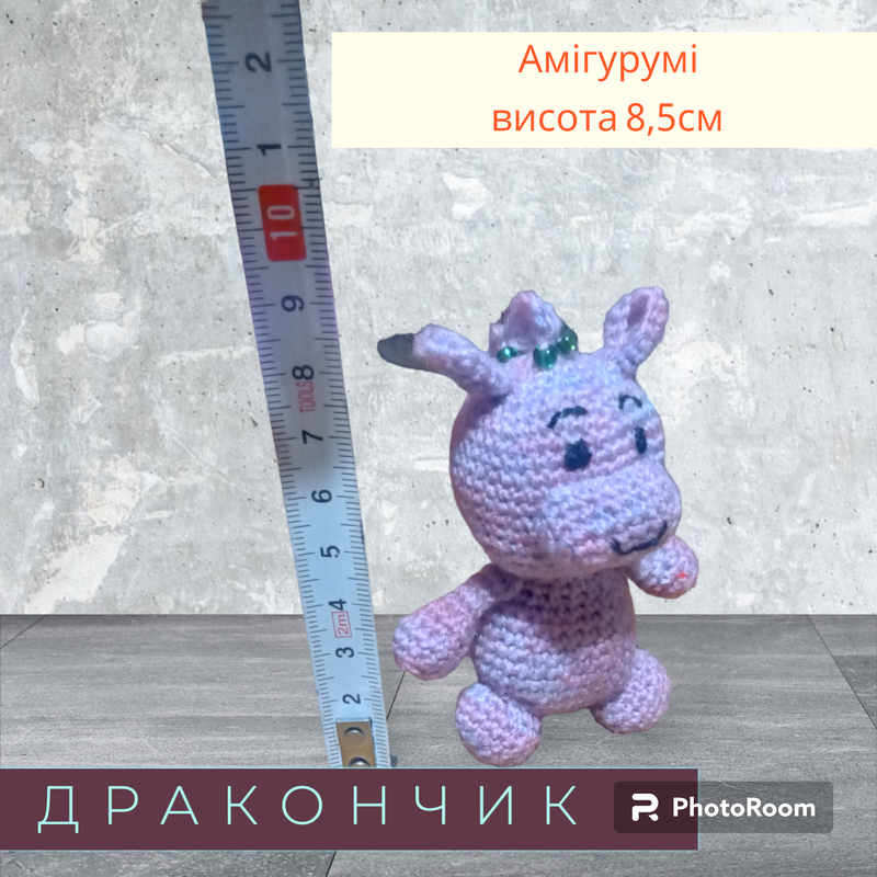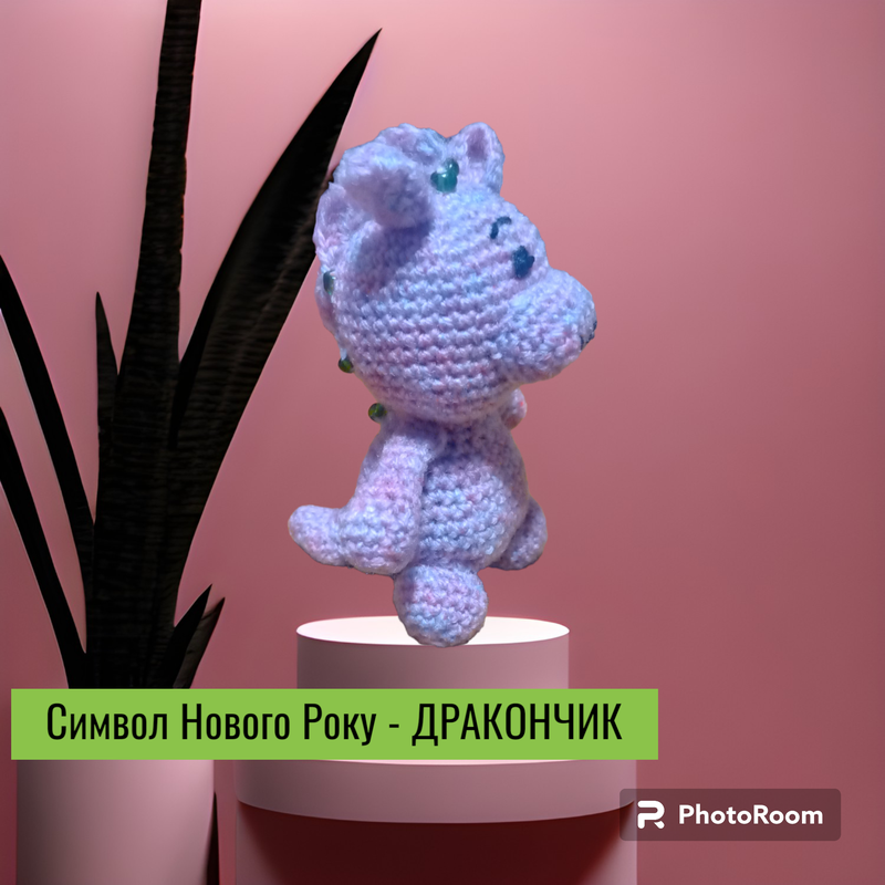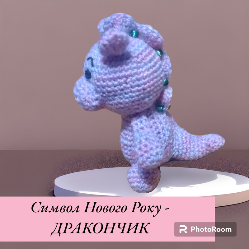 Мініатюрна іграшка - амігурумі, символ наступного року - Дракончик-дівчинка, висота 8,5см, гребінь прикрашений бісером.