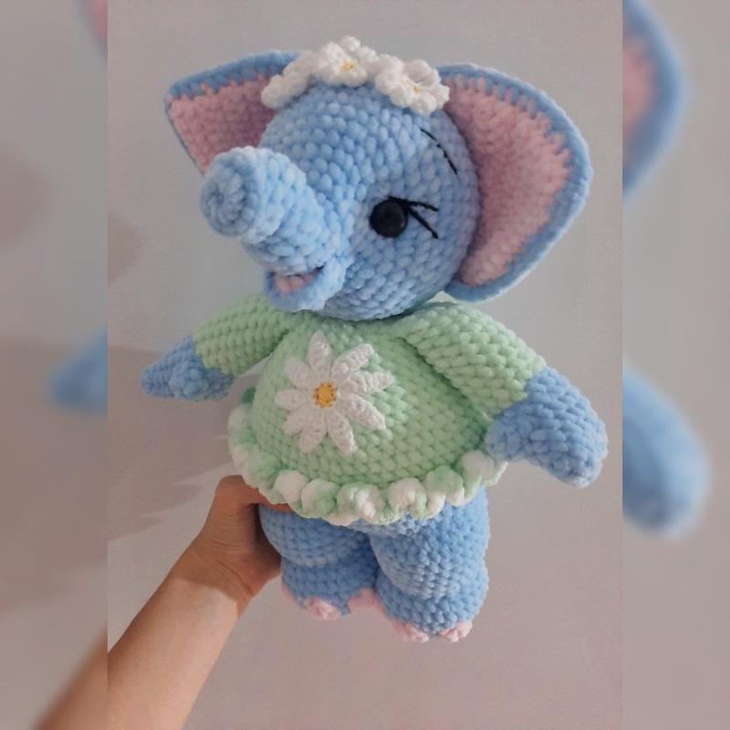 іграшковий слоникз плюшевої гіпоалергенної пряжінаповнювач холофайберочі на безпечному кріпленнізріст 30-32 см можливий повтор в інших кольорах