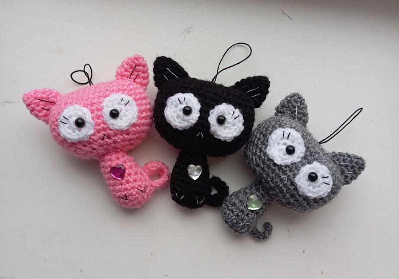 В'язана іграшка сувенір брелок котик, кішечка, кіт