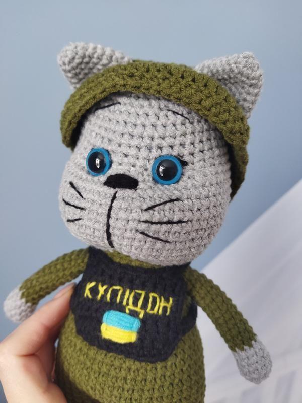 Плюшевий котик зсу, в'язаний котик амігурумі, іграшка роботи
