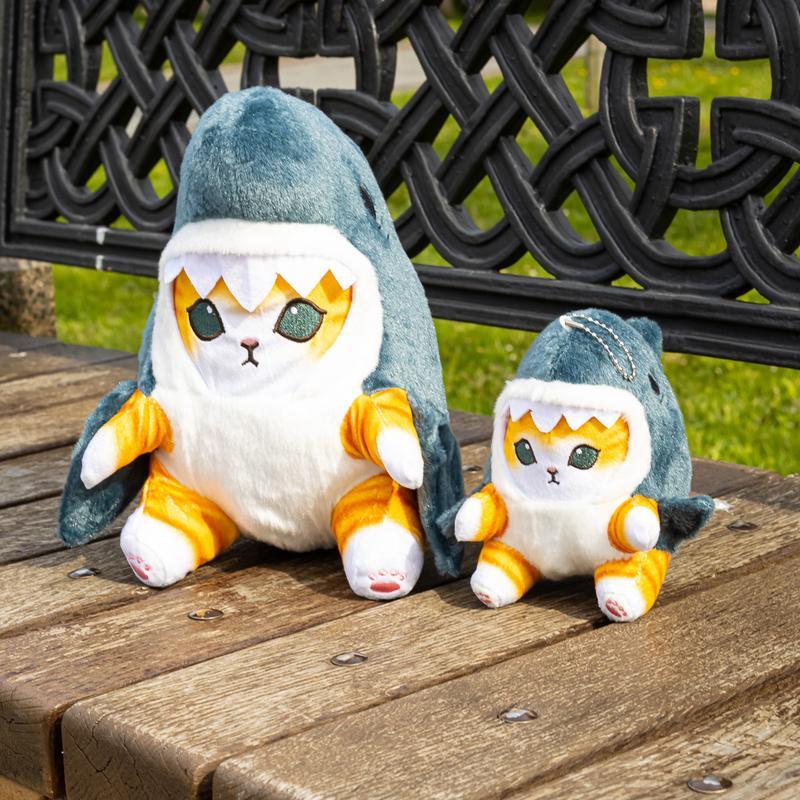 Плюшева м'яка іграшка котик в акулі є в наявності у двох розмірах: 13 см, 25 см.