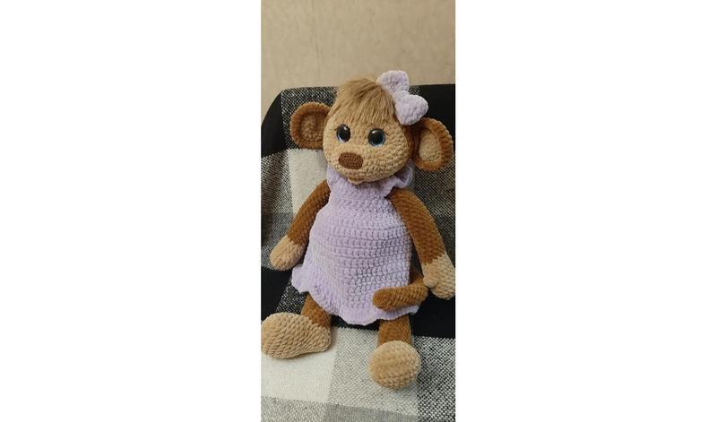 В'язана іграшка. Мавпочка ручної роботи Зріст 43 см Плаття знімається Наповнювач холофайбер Очі на безпечному кріпленні Додаткові характеристики: Стать: Для дівчаток Дивіться інші мої оголошення