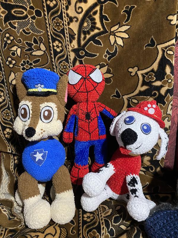 Мʼяка іграшка ручної роботи з плюшевих ниточок гачком.