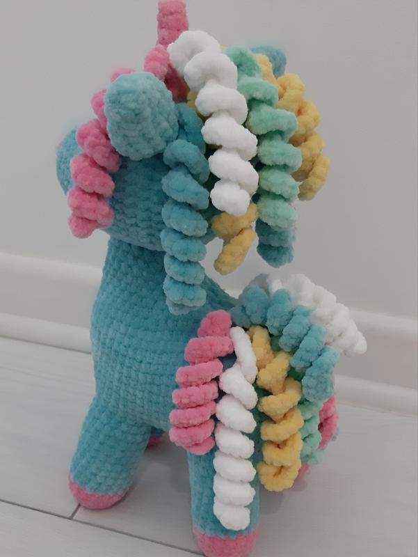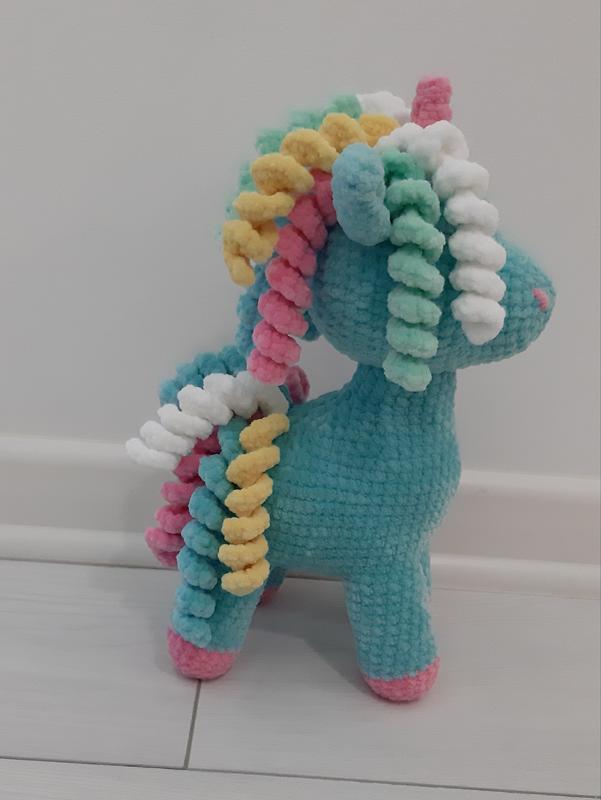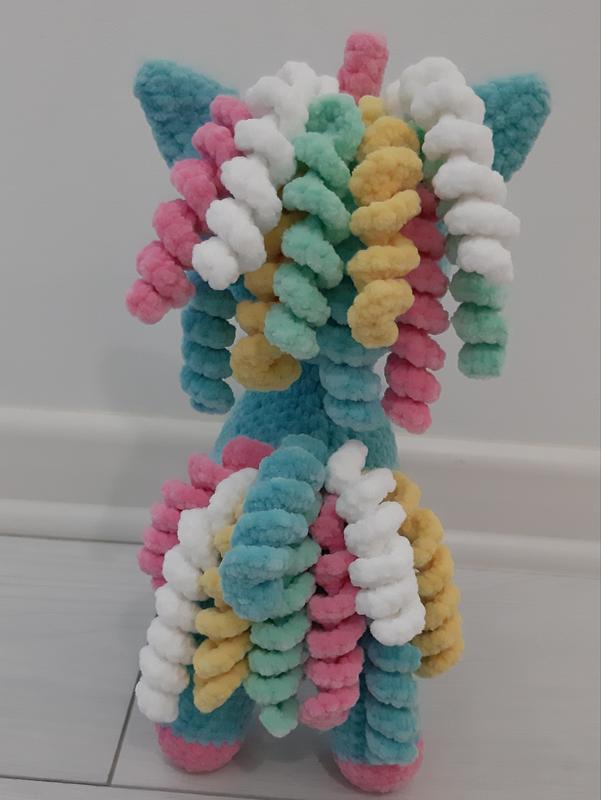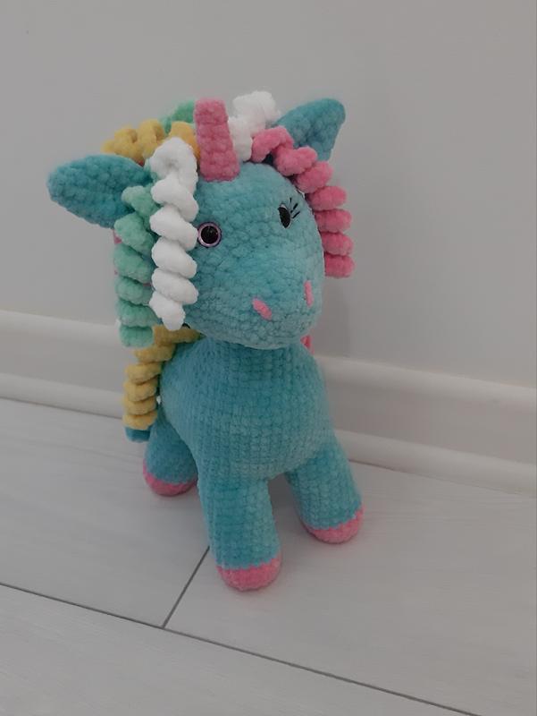мила единорожка шукає вірного друга. Висота з рогом 30 см, виконана з гіпоалергенної пряжі, оченята на безпечному кріпленні, наповнювач холлофайбер.