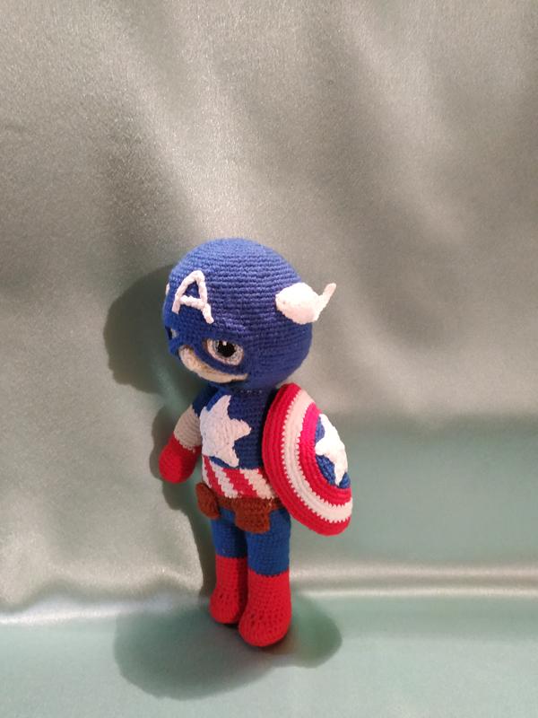 В'язана іграшка Капітан Америка висотою 26 см і маленька в'язана іграшка Чоловічок-Павучок заввишки 12,5 см))) Безпечні м'які іграшки для малюка.