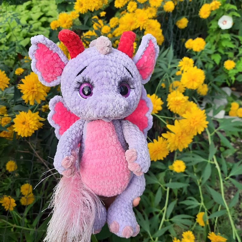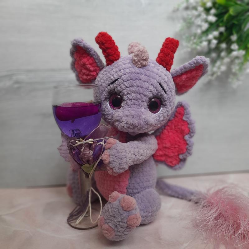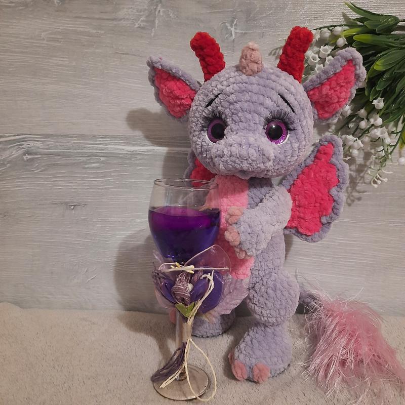 Милий плюшевий дракончик буде чудовим подарунком для будь-якого свята. Ніжки, ручки й голова на суглобах. Виконаний з гипполергенной плюшевою пряжі, наповнювач холлофайбер.