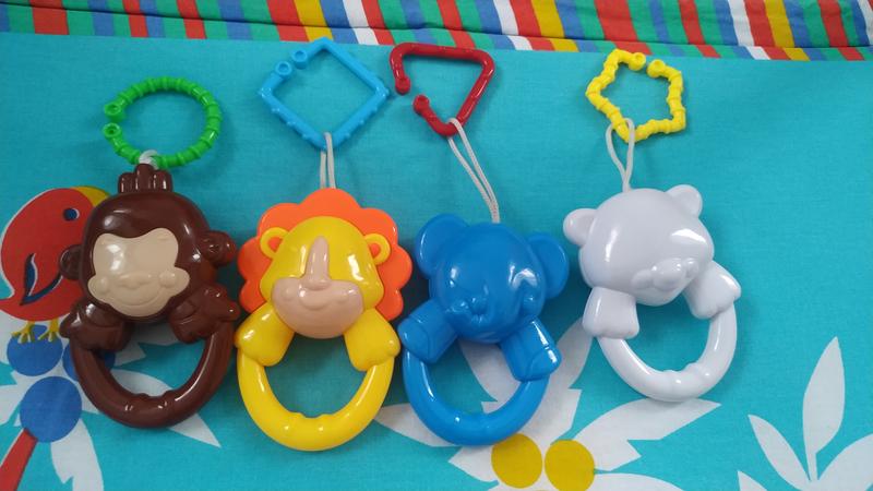 Розвиваючий килимок для малечі 0+. Чотири підвісні іграшки-брязкальця. Можна прати в пральній машині. Стан ідеальний.