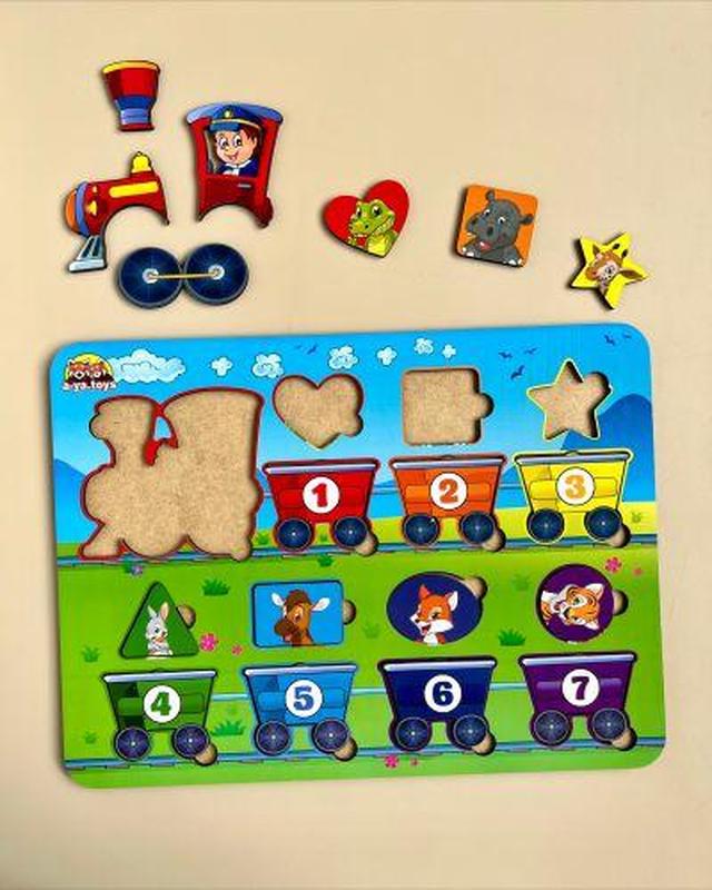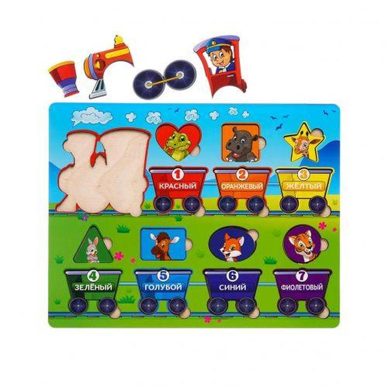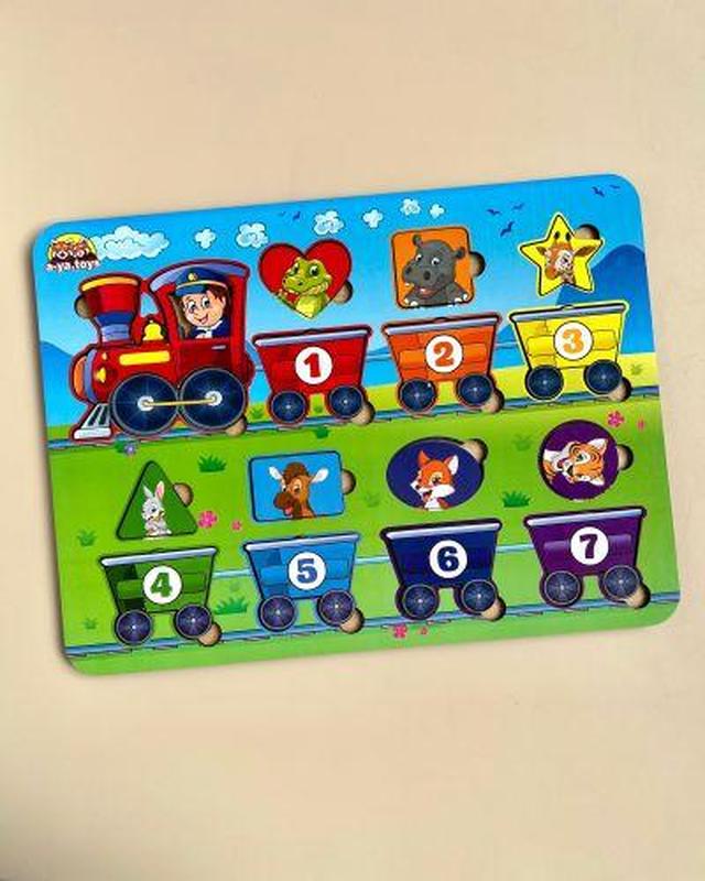 Гра, що розвиває, у вигляді паровозика з вагончиками. Можна скласти поїзд із