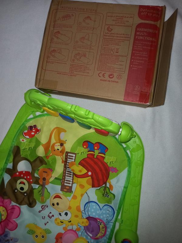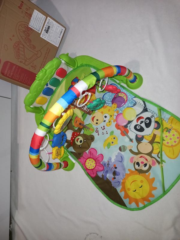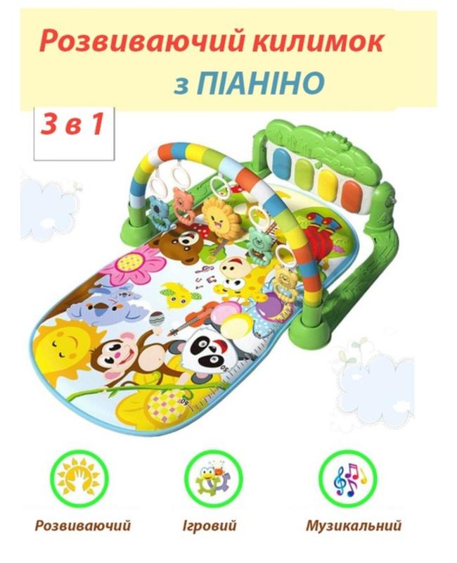 Ігровий яскравий килимок для малюківЦікава іграшка з піаніно. Над килимком дуга з брязкальцями.Працює від 3-х батарейок (в комплект не входять)