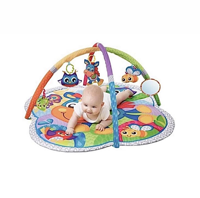 Розвиваючий музичний килимок Playgro Поні (0186991) М’який килимок «Поні» бренду Playgro з музичною іграшкою надовго займе увагу вашого малюка. У комплекті: 2 дуги, 3 підвісні м’які іграшки, дзеркало, два прорізувачі у вигляді листочка та квіточки. Дуги з підвісними іграшками можна ставити для малюків, які вже цікавляться навколишнім світом, але ще не вміють сидіти. Коли дитина підросте, дуги слід зняти, а іграшками грати окремо вдома чи підвішувати на коляску, автокрісло та вирушати на прогулянку. Одна із м’яких іграшок зіграє для дитини приємну мелодію. Гризунки допоможуть малюкові заспокоїти болючі ясна під час появи перших зубів. Якщо малюк забруднив випадково килимок, не варто засмучуватися. Його легко можна випрати в пральній машині. Основні особливості: -підходить навіть для новонароджених дітей; -товстий килимок з яскравими малюнками тварин; -дві дуги з підвісними іграшками; -знімні іграшки та дзеркало; -два рельєфні прорізувачі; -музична м’яка іграшка; -простий догляд. Рекомендовано від народження