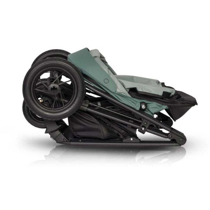 - швидке додавання за допомогою одного натискання кнопки в компактну конструкцію, здатну самостійно стояти, легкість переміщення та захист від саморозкладання забезпечує автоматичне блокування коляски;
