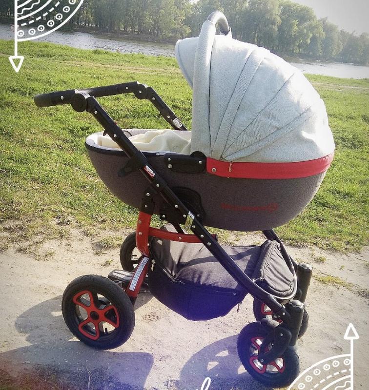 Повна комплектація, хороша амортизація коляски,люлька та прогулочний блок може кріпитись в дві сторони ,що є дуже зручно , обладнана чотирма колесами, наповненими повітрям для комфорту при їзді.Візочок після 1-ї дитини, стан дуже хороший, більш детальні фото можу скинути на Viber. У комплекті є: сумка для мами; дощовик; москітна сітка; колиска; шасі; прогулянковий блок; чохол на ніжки; кошик на рамі (макс. 5 кг), що закривається на блискавку. З дефектів є незначні царапини на шасі ,але вони ніяк не впливають на функціювання коляски
