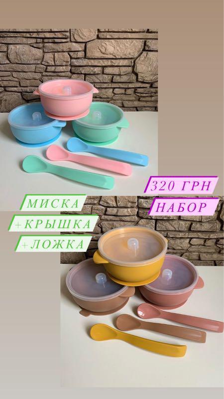 370 грн Миска на присоску Кришка Ложка Харчовий силікон 100% Можна гріти в мікрохвильовці; Можна мити в посудомийці Відправка нп або укрпоштою См мої інші оголошення
