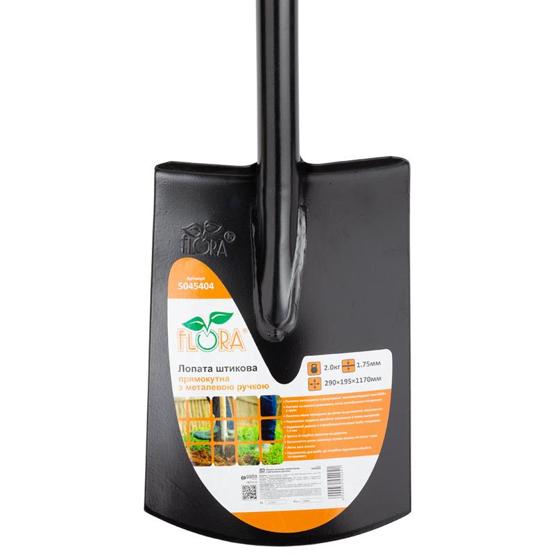Штикова лопата з металевою ручкою FLORA 290x195x1170мм 2.0кг для саду та